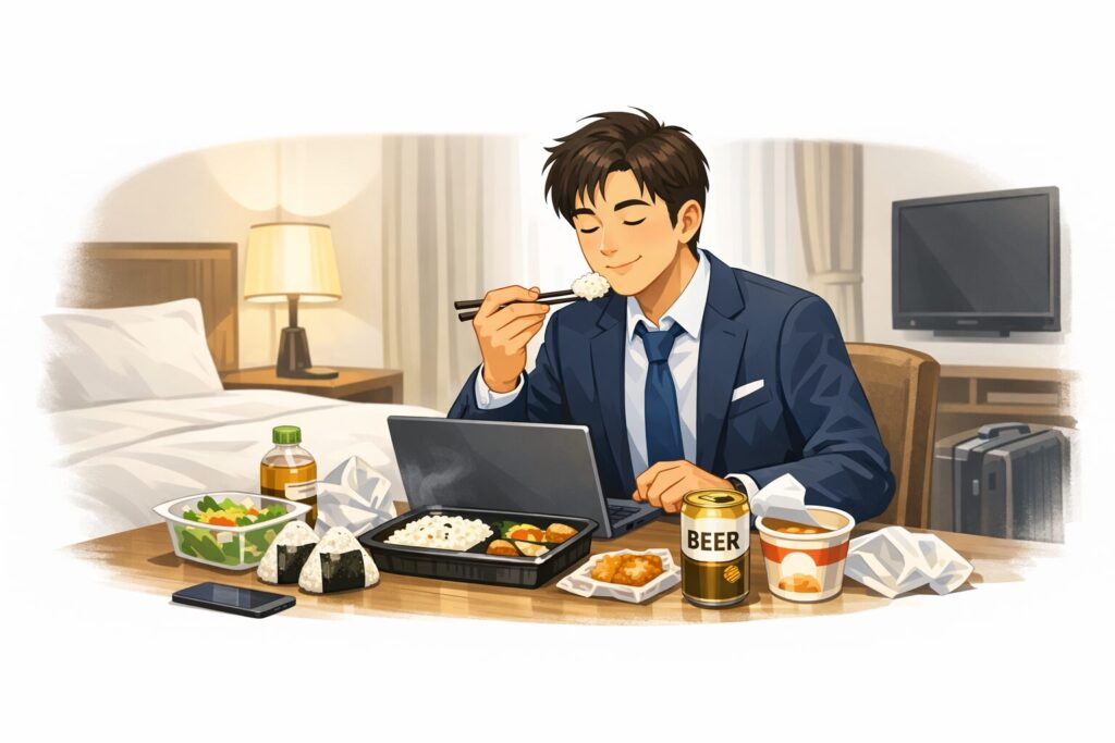 出張先でついつい立ち寄るコンビニですが、食費がかさむ最大の原因です。