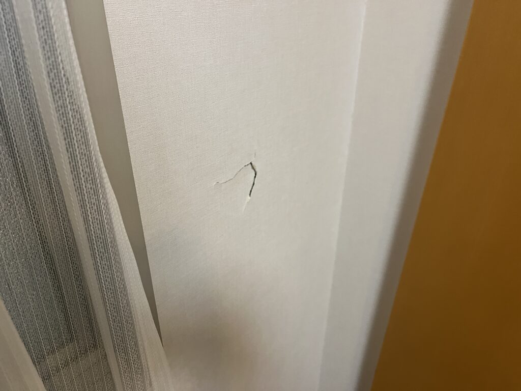 部屋の壁に穴が空いてる!! シャワーカーテンがカビてる!!