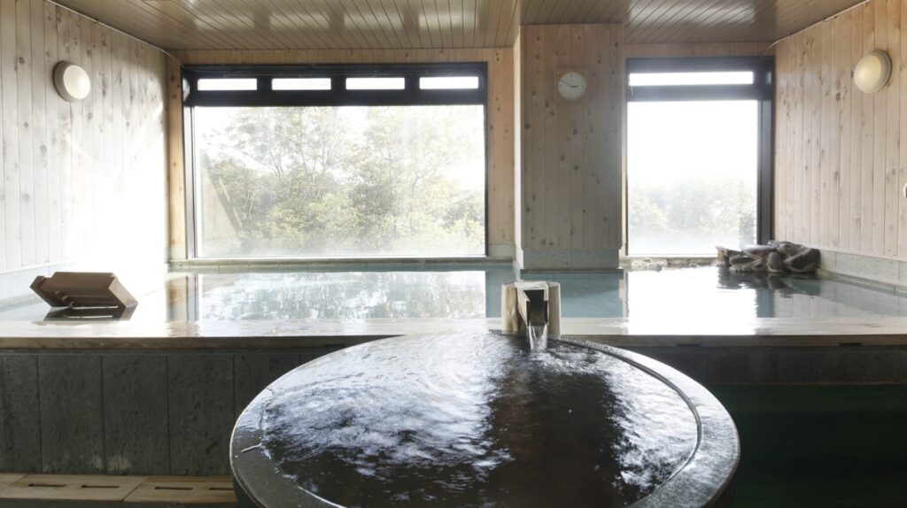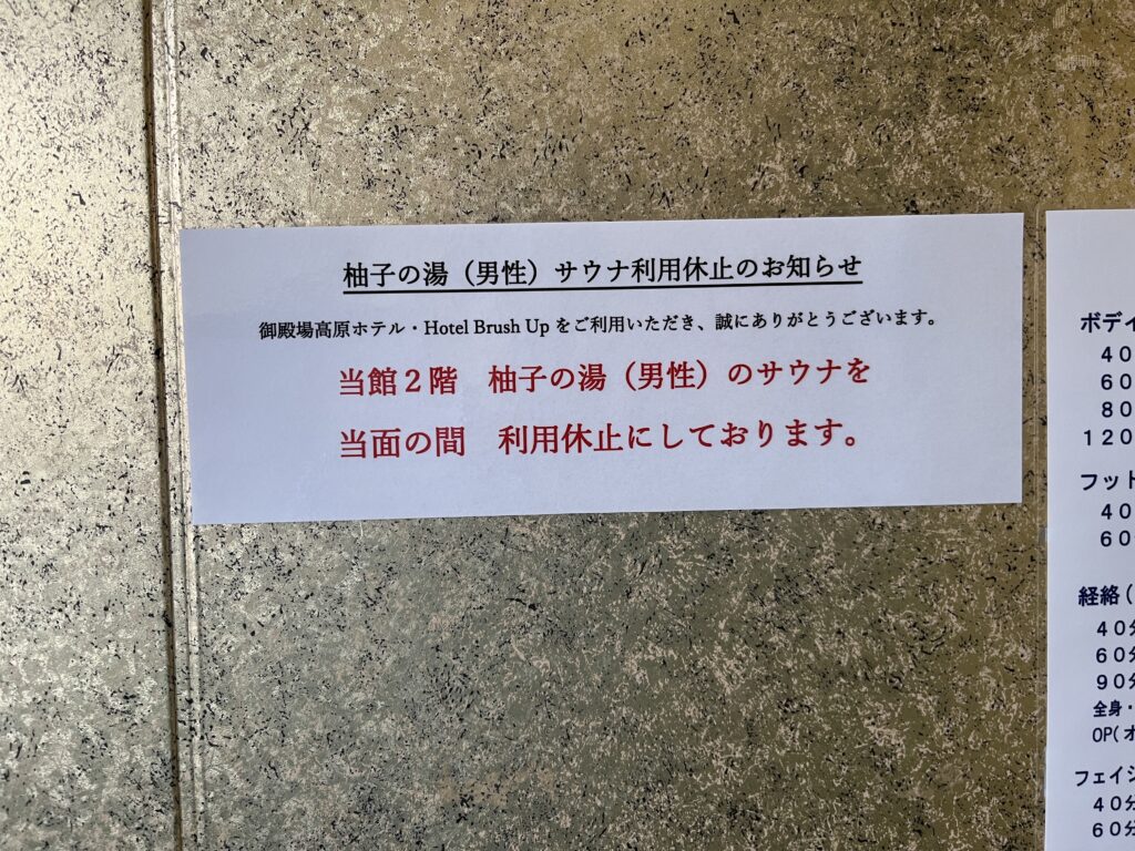 隣の館の温泉が無料で利用できて良かったよ!温泉はこじんまりとしていたけど、落ち着いた空間でリラックスできた。だけど残念ながらサウナは休止中だった。