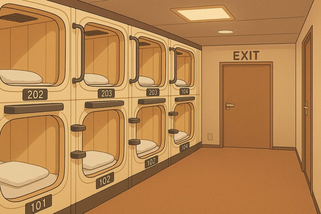 ※今回はカプセルホテルということもあり「撮影禁止」だったので記事内のイラストはすべて実際のものとは異なるイラストです。私のイメージによるものなのでご了承ください。