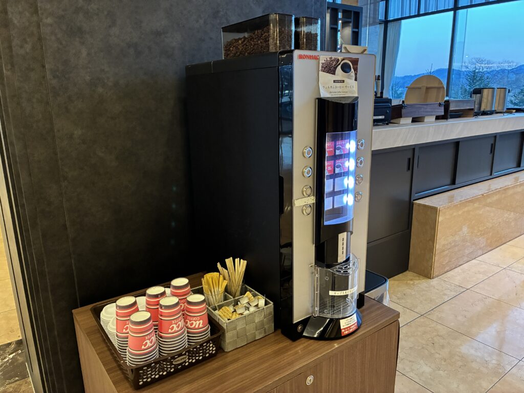 部屋にコーヒーメーカーが有り、美味しく頂けました。