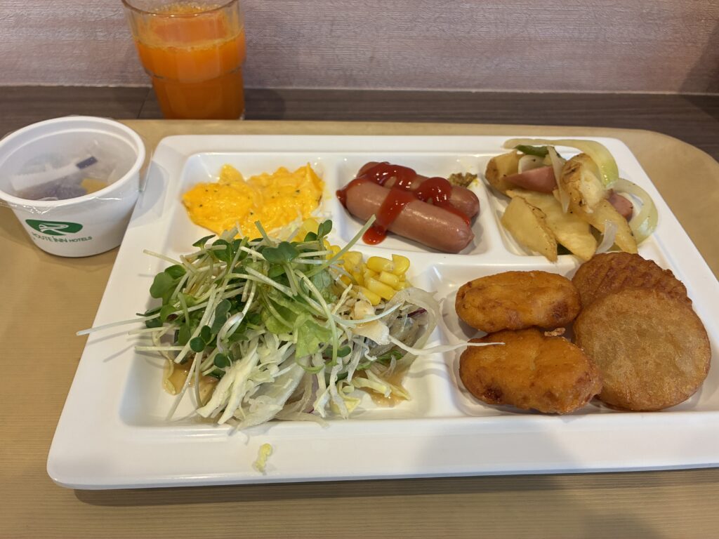 毎回、ルートインは無料の朝食バイキングがすばらしいです。